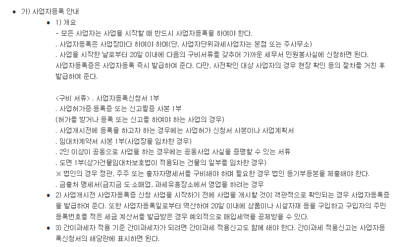 업종별 사업자등록 절차